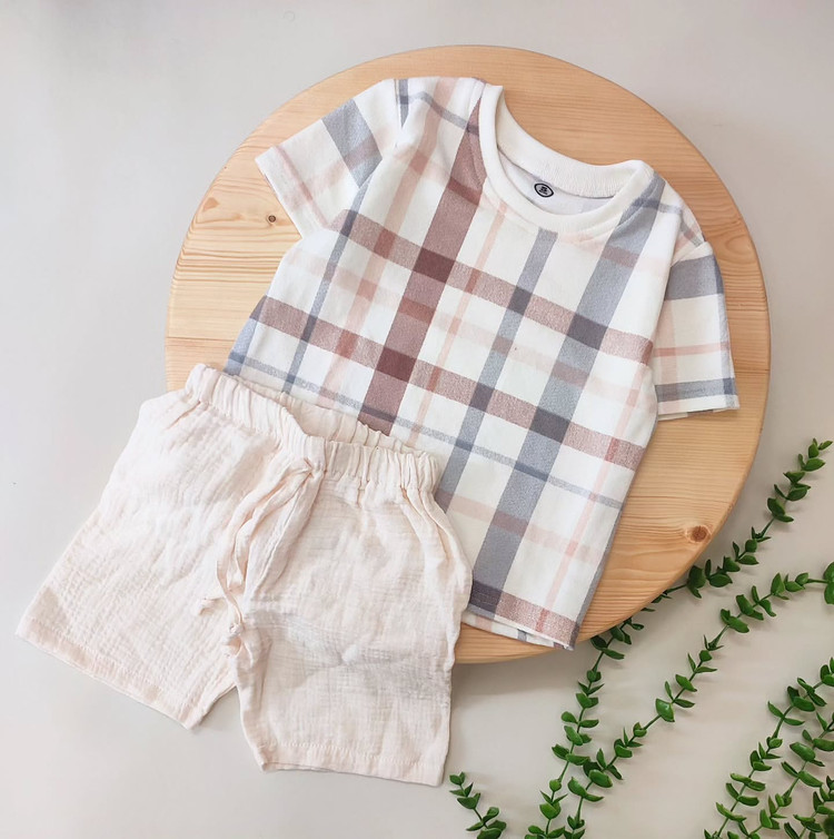 تیشرت و شلوارک چهارخونه پنبه