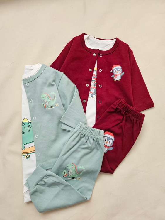 ست سه تیکه نخ پنبه که توی پاییز و زمستون یه گزینه عالی واسه بچه هاست چون توی خونه در طول روز گرمه شب و موقع خواب خنک تر خیلی راحت میتونید چند منظوره ازش استفاده کنید😉