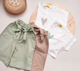 سایز ۳ سال قد کراپ ۳۰ پهنا ۳۳ قد شلوارک ۴۱ دور کمر ۴۰